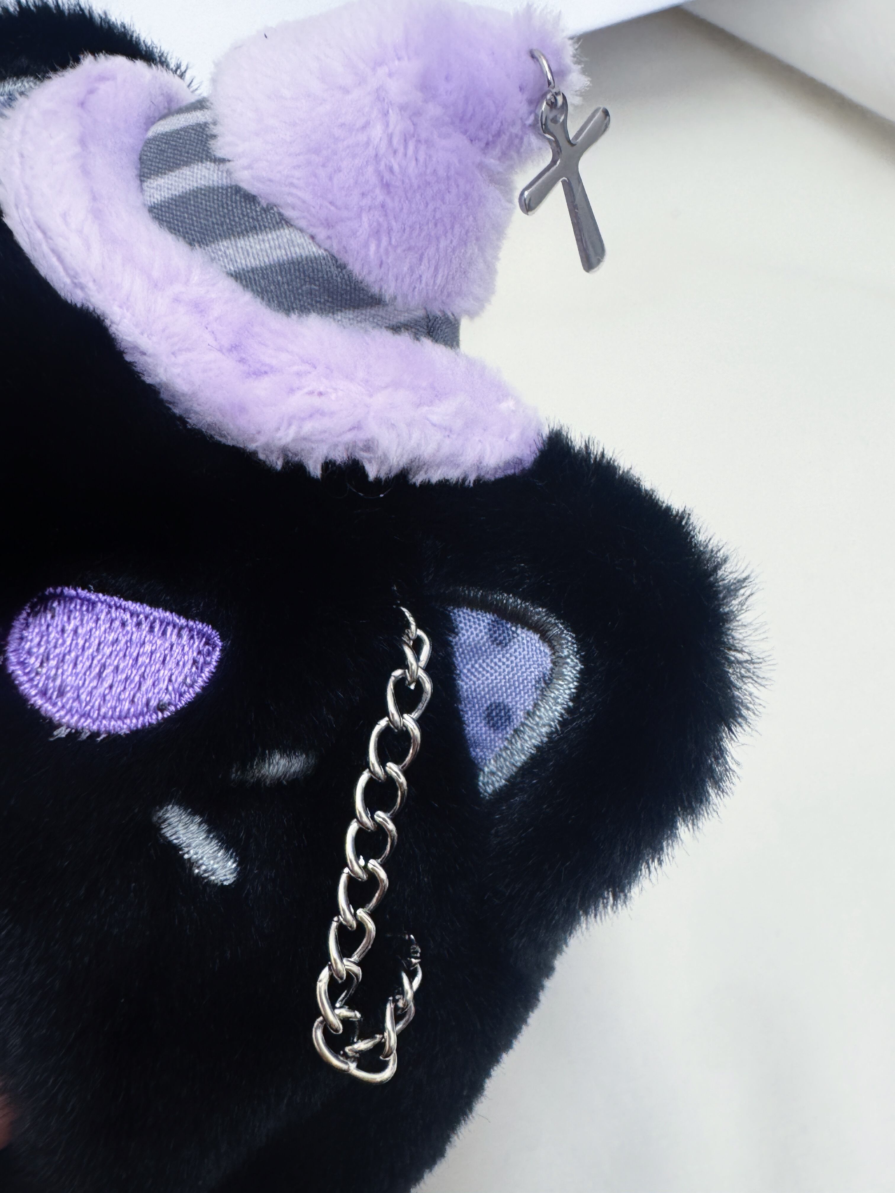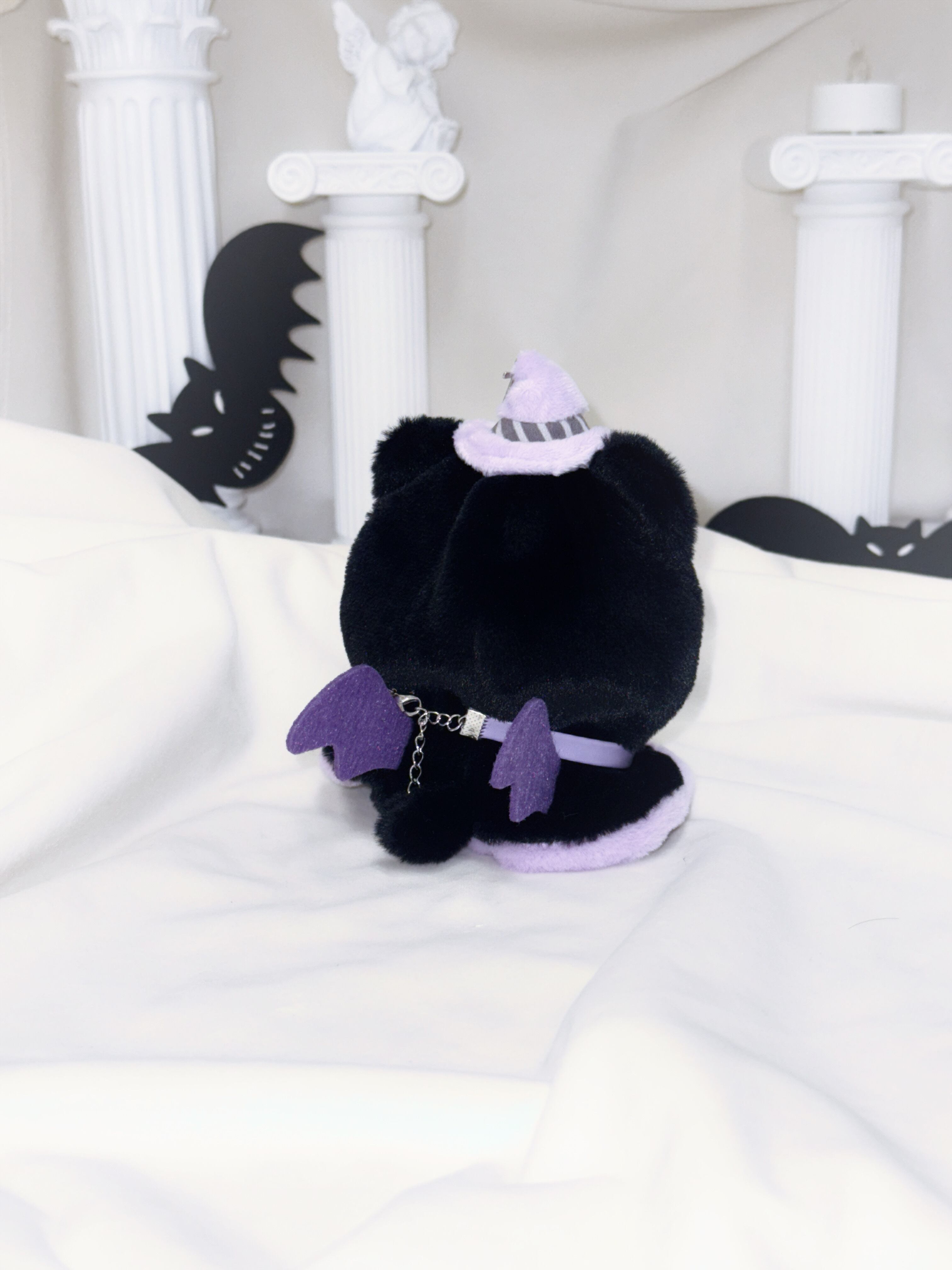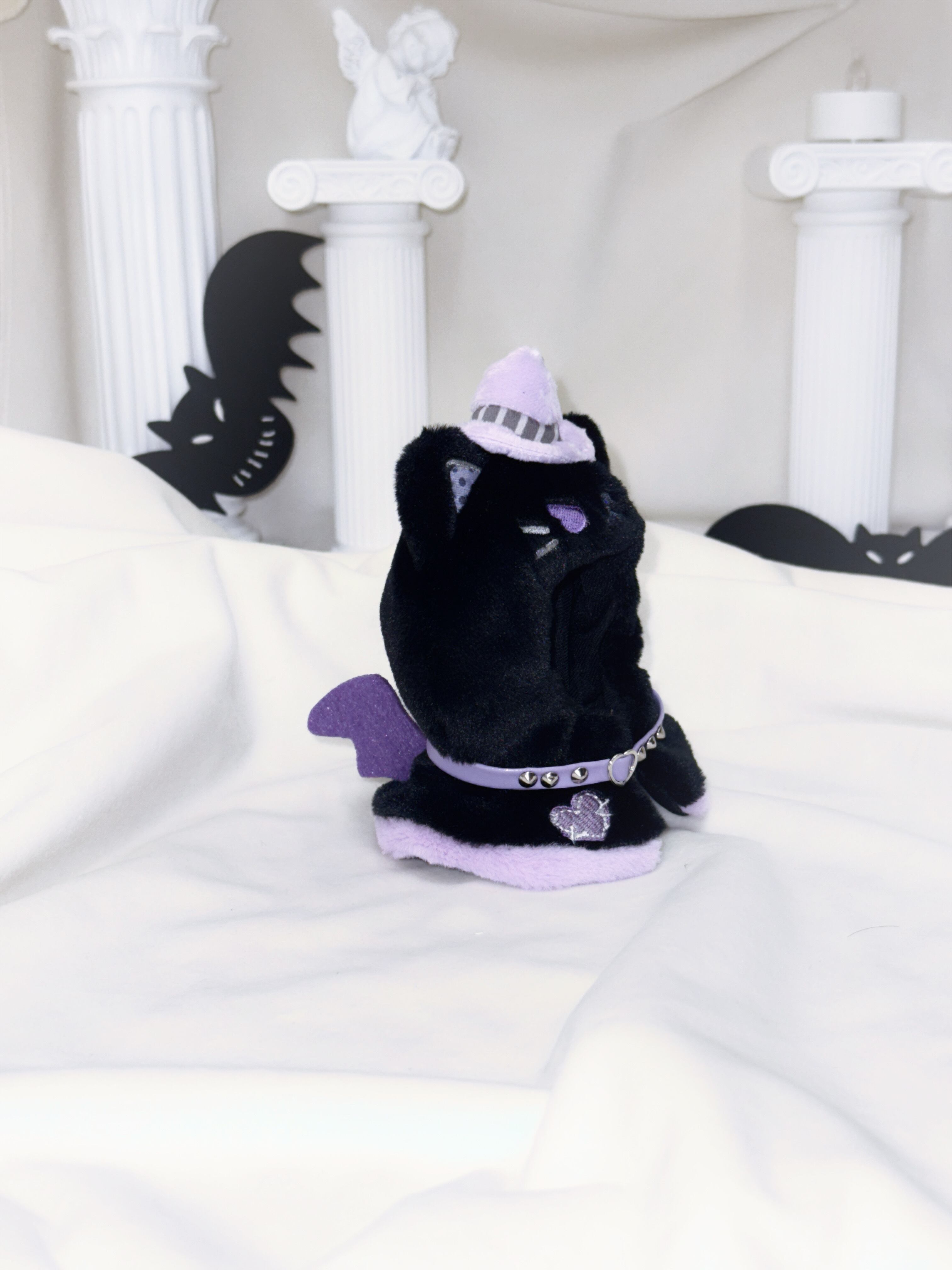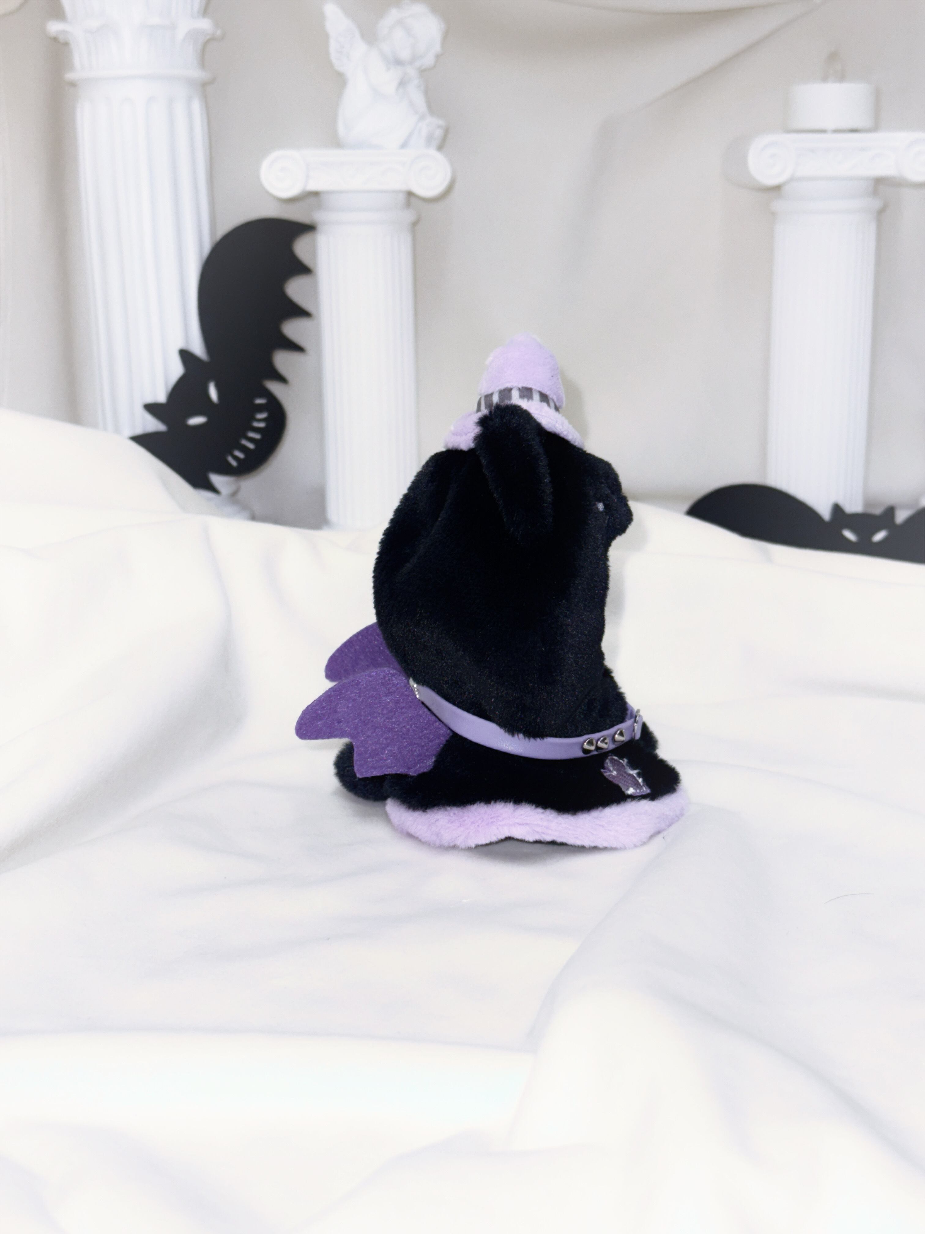 10cmサイズのぬいぐるみにぴったりの、ハロウィン限定マントコスチューム。黒と紫の配色が織りなす深みのあるトーンは、夜の帳のように神秘的で静かな輝きを放ちます。