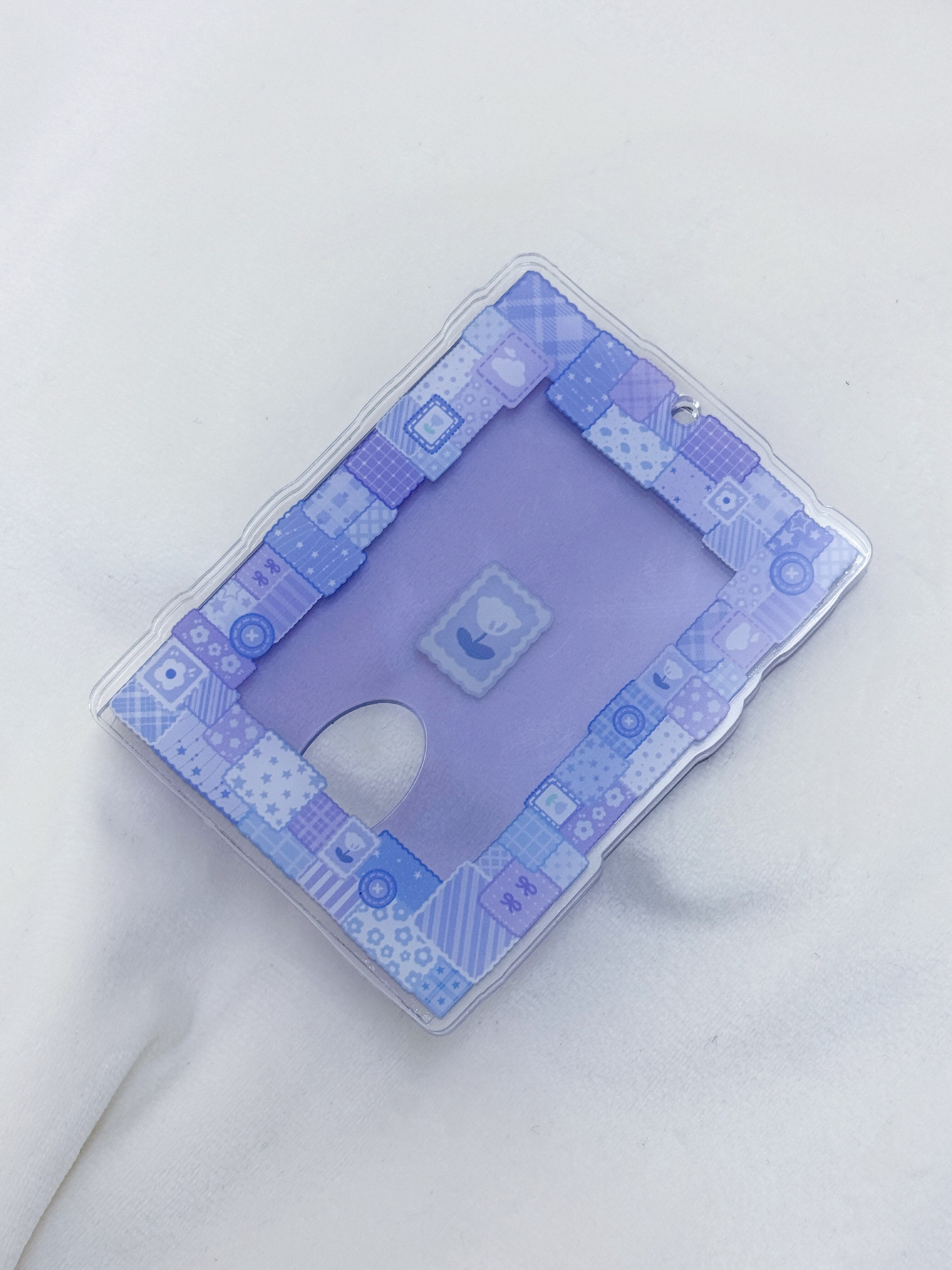 アクリルならではの光沢と透明感が、コラージュ柄をいっそう引き立て、推しカードを可愛く包み込みます。